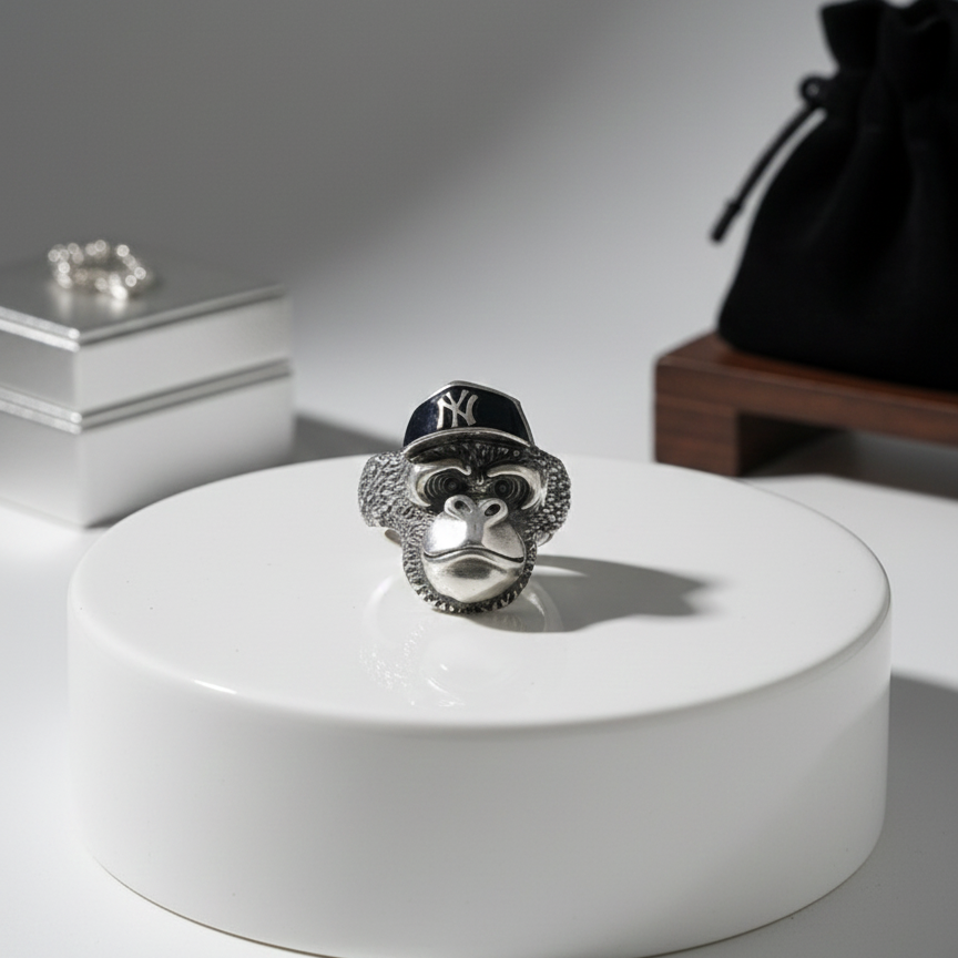 Découvrez The Kong, une pièce maîtresse de notre collection, conçue pour l'homme qui affirme son caractère avec audace. Plus qu'un simple bijou, cette bague est une véritable sculpture à porter, alliant la puissance de l'animal emblématique à l'élégance urbaine de la culture "streetwear".